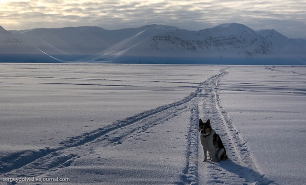 Пока местный развлекал покатушками, пес терпеливо ждал на снегу:
