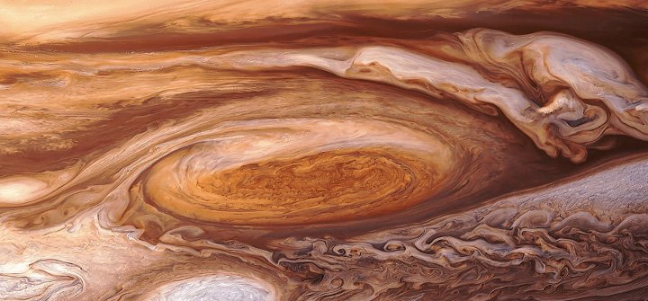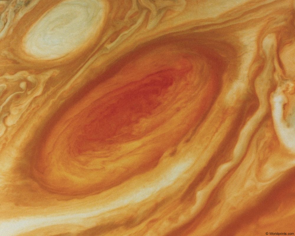 Кстати, видите на нем круглое пятнышко? Это Большое Красное пятно, по сути буря, которая идет там вот уже четыреста лет и по размеру раза в полтора больше Земли.