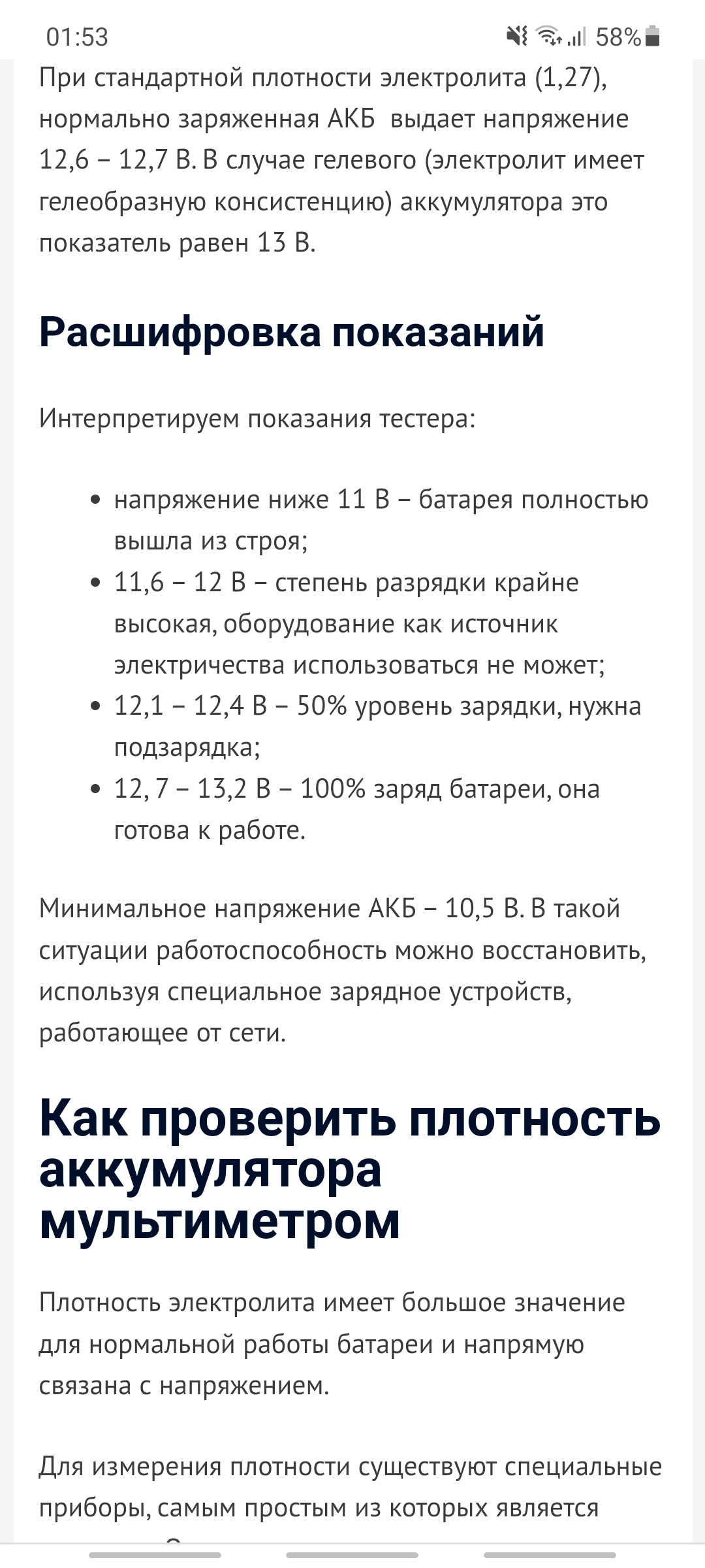 Ой, умный мужчина. А можно вопрос? Машина Матиз, старая, аккум брала два года назад. Нет-нет, да иногда сражался в ухнарь. (Мааленький, а габариты не выключены). Поэтому в багажнике всегда провода. И вот перестала прикуриваться. То есть найду, кто поможет, провода кинули, а она не заводится. Индикаторы внутри салона загораются, а сама не заводится. Только с толкача.После этого долго-долго катаюсь. И при следующем запуске все ок.Почему может не прикуриваться?