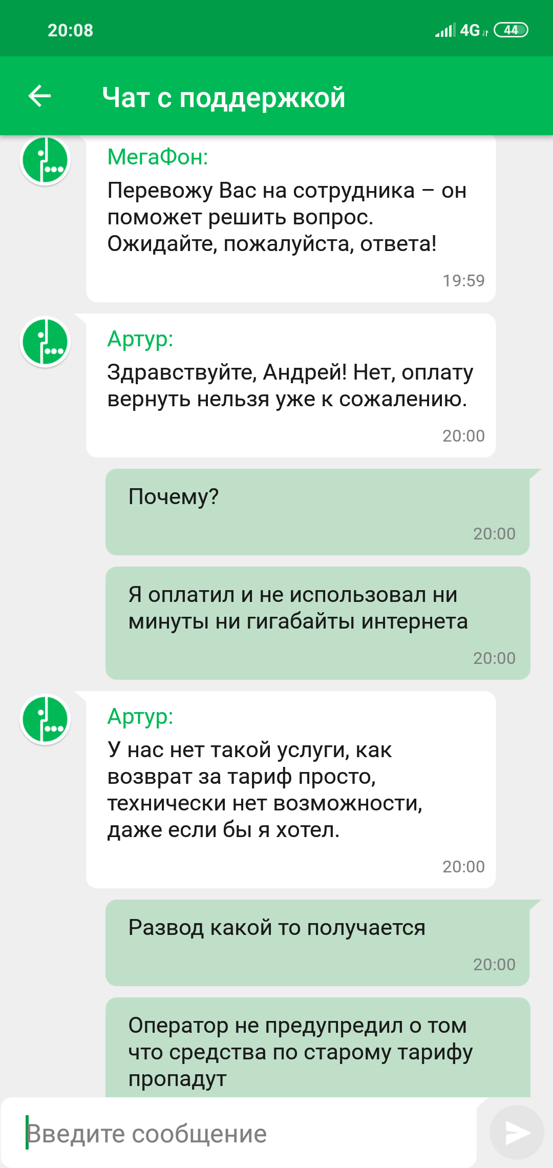 Случилось тут микронепонимание с моим зеленым оператором сотовой связи