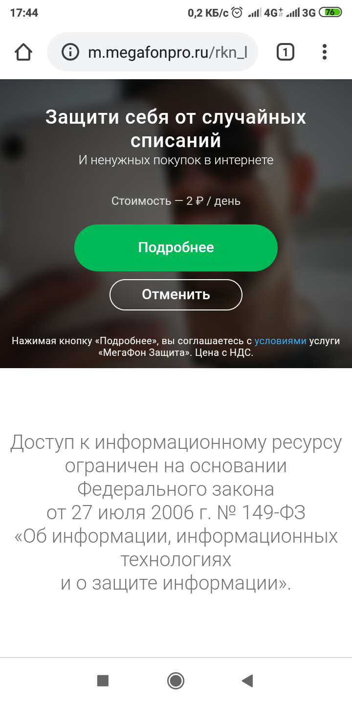 5 SerSergio Лига мобильной связи Как Мегафон "защищает" от Рутрекера 5 лет назад Пытаются впарить платную услугу. Ещё и подписка на нее кнопкой "Подробнее" [моё] Мегафон Платные подписки Скриншот Ещё 0