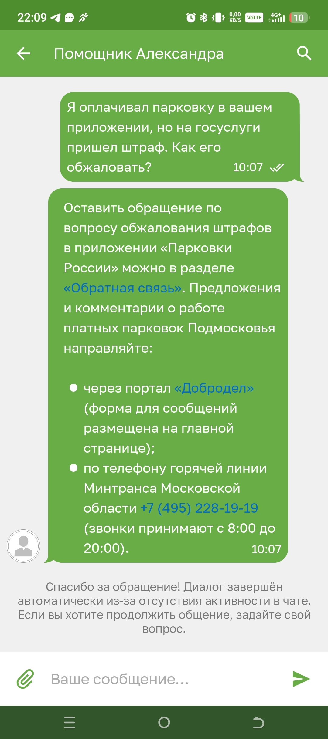 09.10.25 я остановилась на платной городской парковке в Москве, оплатила своë пребывание там через вышеуказанное приложение и со спокойной душой пошла на приëм к врачу. Вернувшись, я завершила парковку, убедилась, что деньги со счëта списали и уехала домой.