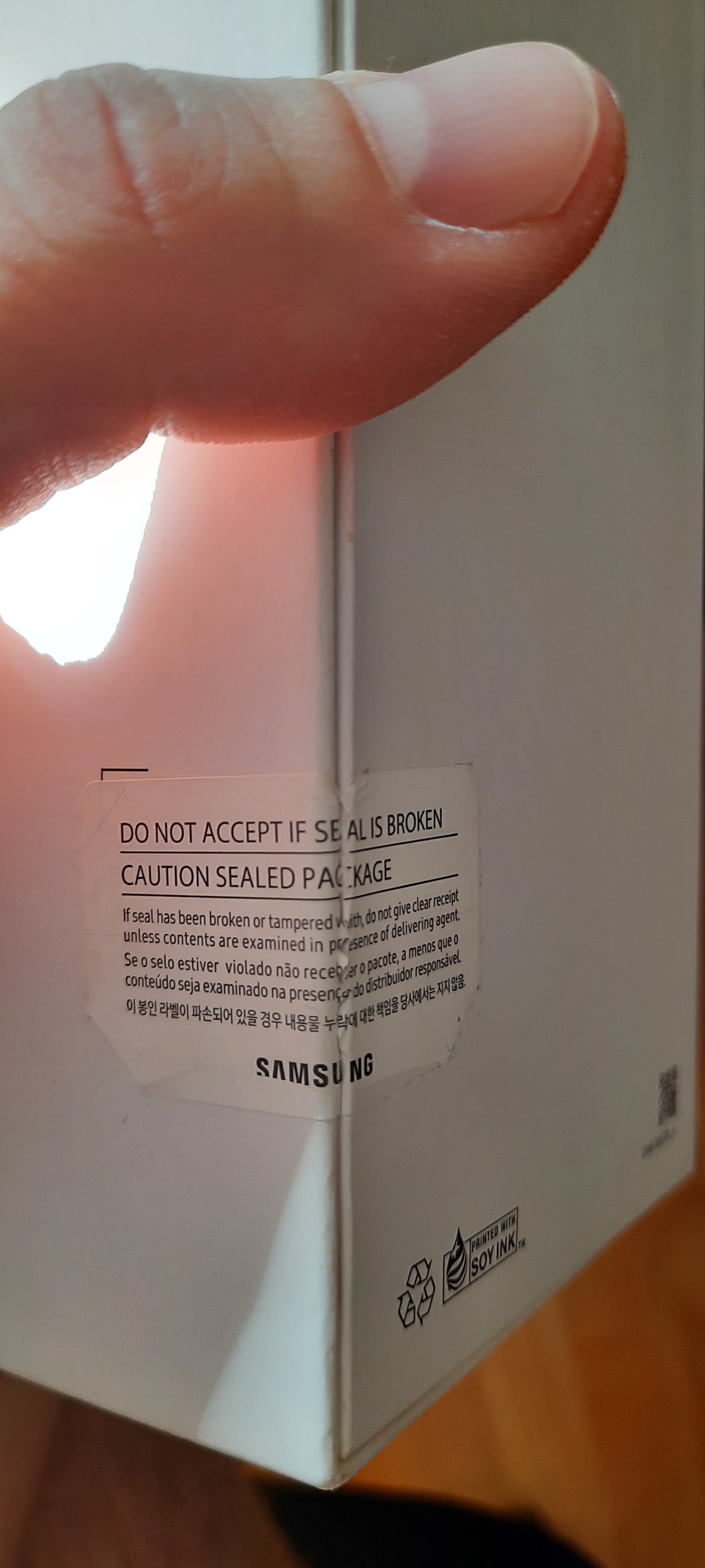 Второй звоночек: на основание коробки и крышкы есть наклейка, которая при вскрытии обычно разрезается(как на фото), но тут она целая приклеена на скотч.