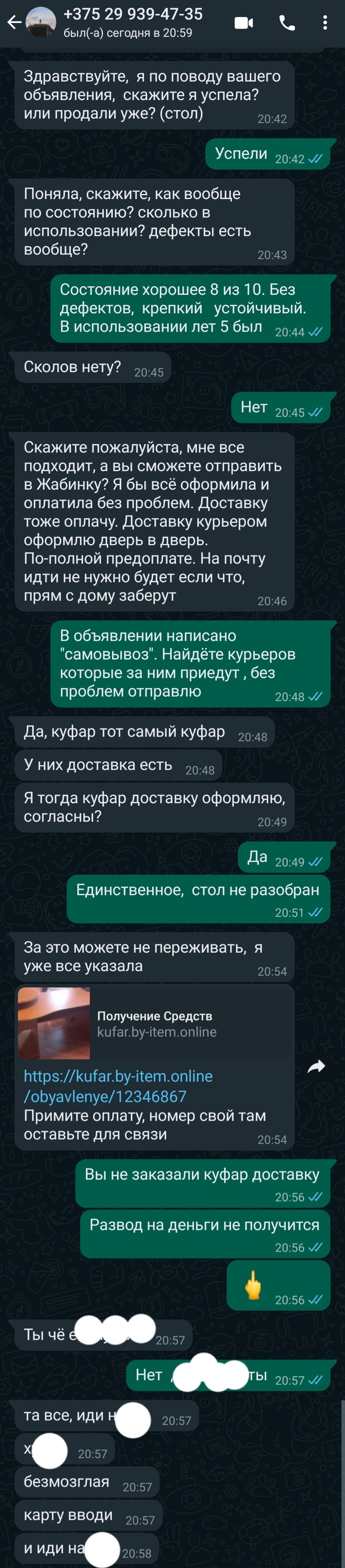 В очередной раз решив, продать что-то на куфаре , я наткнулась на мошенников. Сначала подумала, что раз уж номер РБ , вряд ли это мошенники. Но увы нет.