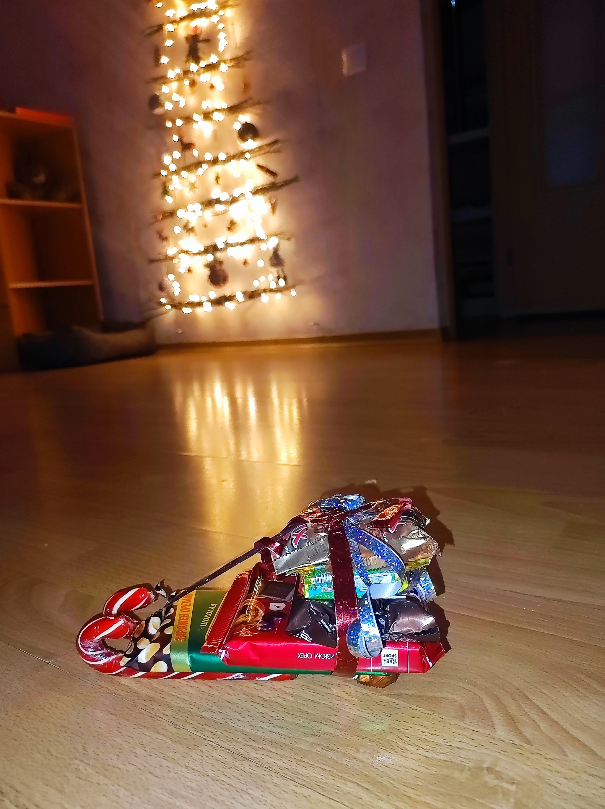 Ко мне приехали сани Санты с кучей конфет)) это ужасно милый способ упаковки))