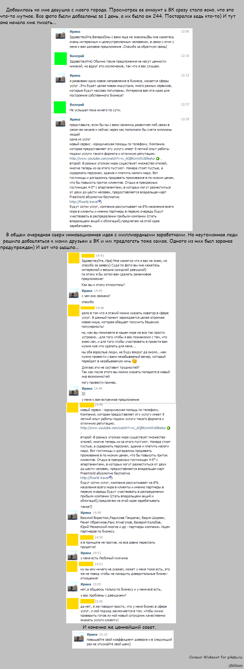 1 Wishexxt 11 лет назад Как мне предложили строить новый бизнес... Небольшая история, может кого-то повеселю даже ей) Длиннопост Бизнес Переписка ВКонтакте