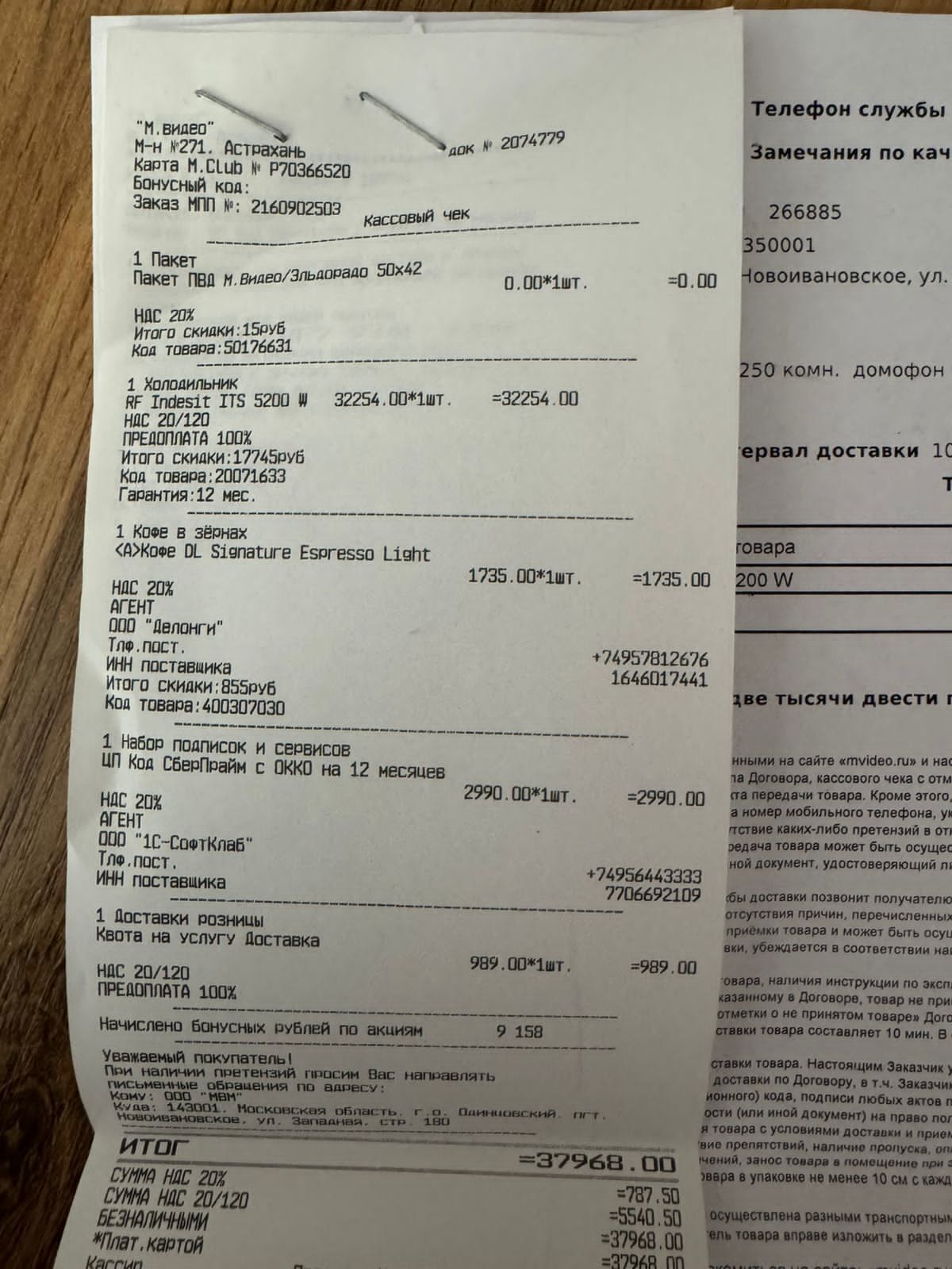 Приветствую сообщество Пикабу! Хотелось бы поделиться своим опытом покупки в М-Видео и проконсультироваться. Сломался у тещи холодильник, мы с женой решили сделать ей подарок на Новый год и купить ей новый. Пришёл я в магазин, выбрал холодильник ценой практически 37000 р. Консультант посмотрев что-то у себя в телефоне сказал: " Вы пьёте зерновой кофе, вам полагается ПОДАРОК кофе" Если я не ошибаюсь, подарок это что-то безвозмедное и бесплатное, верно же? Так вот, я подумал ну если подарок пусть будет. Далее, уже на кассе, он мне говорит, что мне ещё полагается подписка ОККО, на что я ему сказал мне она не нужна и у меня уже есть эта подписка. Я всё оплатил и к сожалению уже дома я стал читать накладную, в которой я увидел, что холодильник непосредственно стоит 32 с лишним, и уже в чеке прочитал, что кофе в подарок мне посчитали за 1800 почти и подписку ОККО, про которую я сказал, что она мне не нужна посчитали за почти 3000р. К сожалению живу я не в самом городе Астрахань, а области за 150 км и так как не смог лично вернуться в магазин позвонил на горячую линию и оставил обращение, которое сегодня утром увидел закрытым с начислением БР в размере 1000 с чем то. Написав сегодня ы поддержку, я сказал, что меня это ну совсем не устраивает и потребовал вернуть разницу. Вопрос к сообществу такой- каковк шансы, что они добровольно вернут мне разницу и вообще имеет ли право магазин так делать? Так же хотелось бы узнать у знающих людей, как мне поступить дальше в случае отказа с их стороны, идти в Роспотребнадзор или сразу составлять до судебную претензию или сразу подавать в суд и что потребовать в иске? Что-то мне подсказывает, что так делать магазин не имеет права и в случае подачи иска суд встанет на мою сторону. Сумма конечно не сверхестественная, но на мой взгляд и не самая маленькая 4700р разница, тем болеет за то что мне не нужно и вообще это уже дело принципа. Понимаю сам дурак, не посмотрел на месте, но всё же мне кажется этотне повод так обманывать клиентов. И вот после таких поступков розничные магазины жалуются, что клиенты уходят на маркетплейсы... Есть тут представитель М-Видео, может он ответит? Заранее прошу прощения за возможный ошибки, пунктуацию и тп.