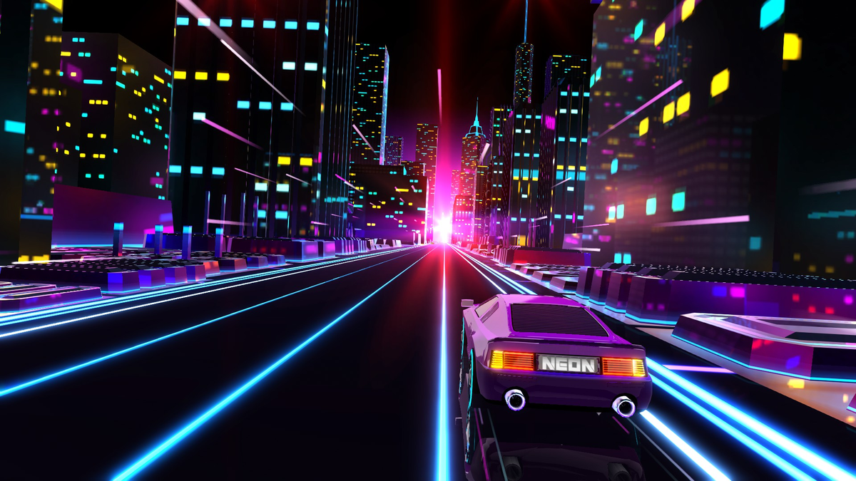 Пока разбирались с управлением и генерацией трассы, наткнулись на Neon Drive — игру, которая делала примерно то же, что и мы планировали. Тем не менее, разработку продолжили.