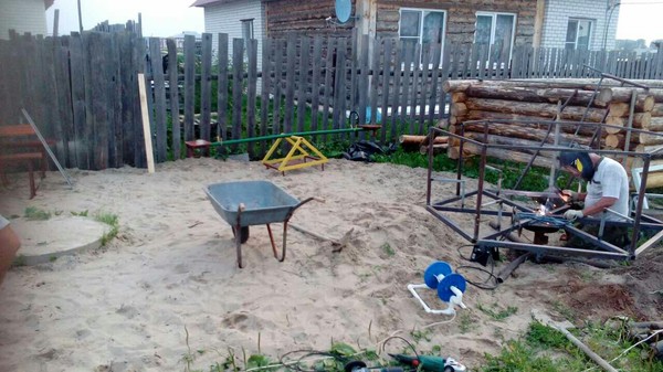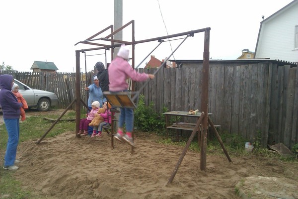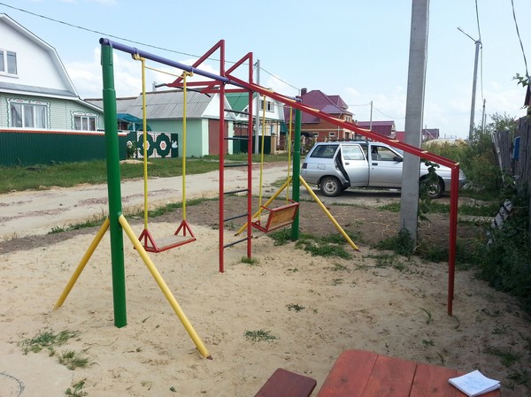 Как обычно у нас бывает, при планировании квартала под ИЖС, не было выделено место под детскую площадку. А так как, люди строились, обживались и рожали детей, проблема встала остро. И как-то сидя с соседом за пивком решили, а давай на стыке наших участков, на улице качели поставим.