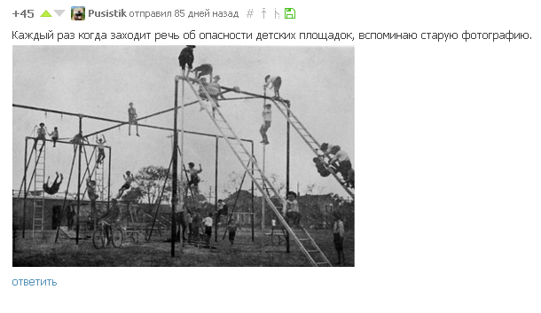 А дети все равно не смирятся с этой стерильностью. Природа у них такая — исследовательская. Беспрестанно проверять свои возможности, ощупывать границы, искать и находить новое, интересное, неизведанное. Из любой безопасной штуки они сумеют сделать опасную.