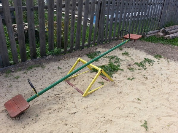Главным же образом, это спокойствие обеспечено тем, что на новых качелях практически никто не катается. Старые были заняты целыми днями — в очередь надо было становиться! Особенно на круглые качели с двумя сиденьями, одинаково любимые как малышами, так и ребятами постарше, подростками, поскольку позволяли кататься множеством способов.