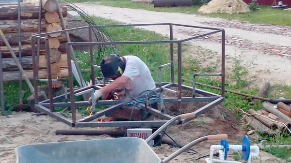 Потом еще сосед (дедушка двух внуков) со своим сварочником подошел. Другой мост от УАЗа для карусели приволок. Кто-то краску и покрасил.
