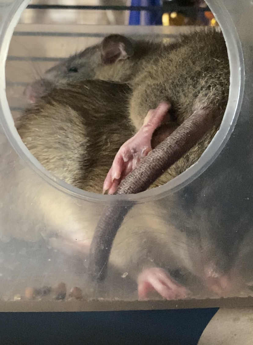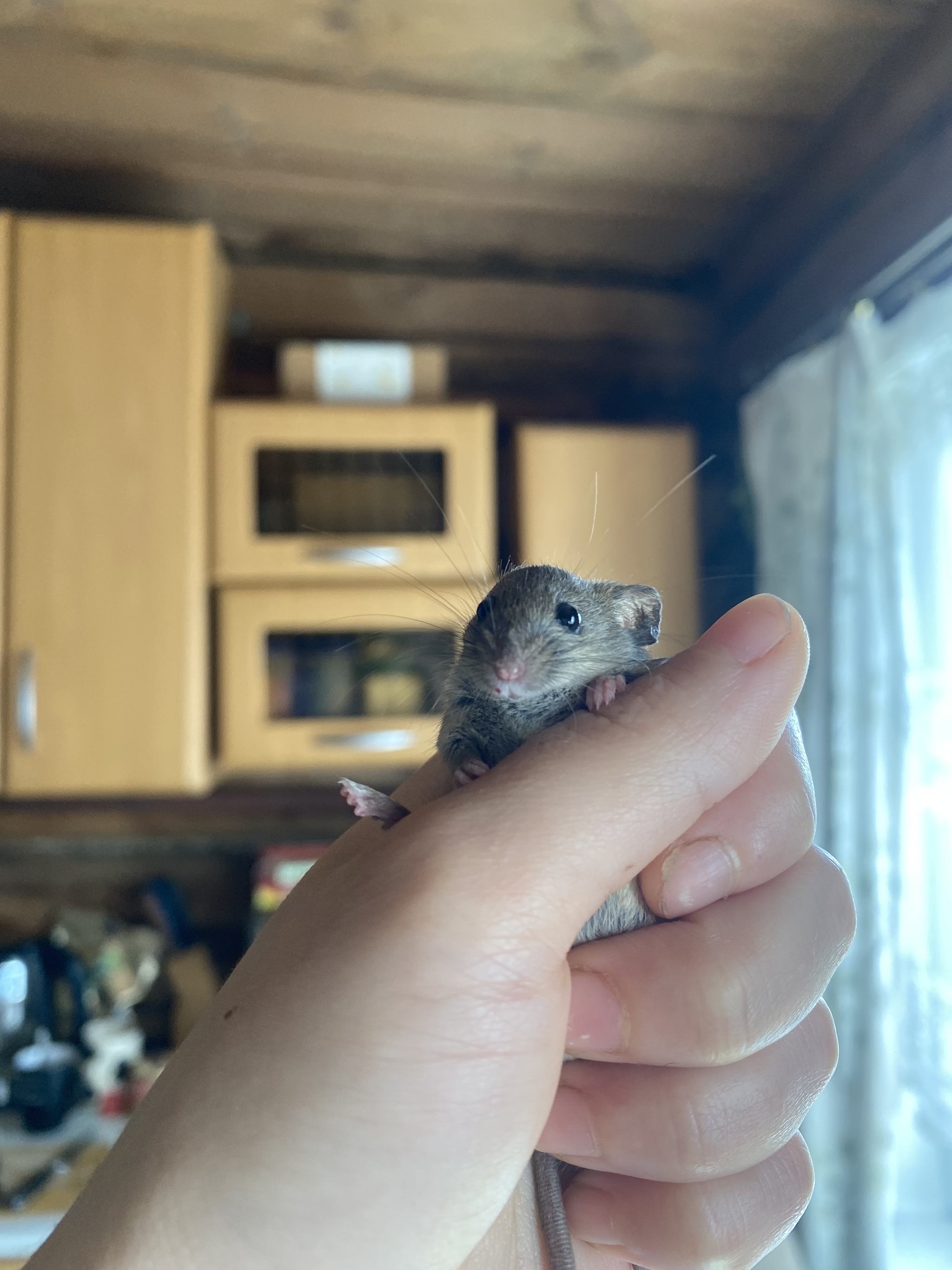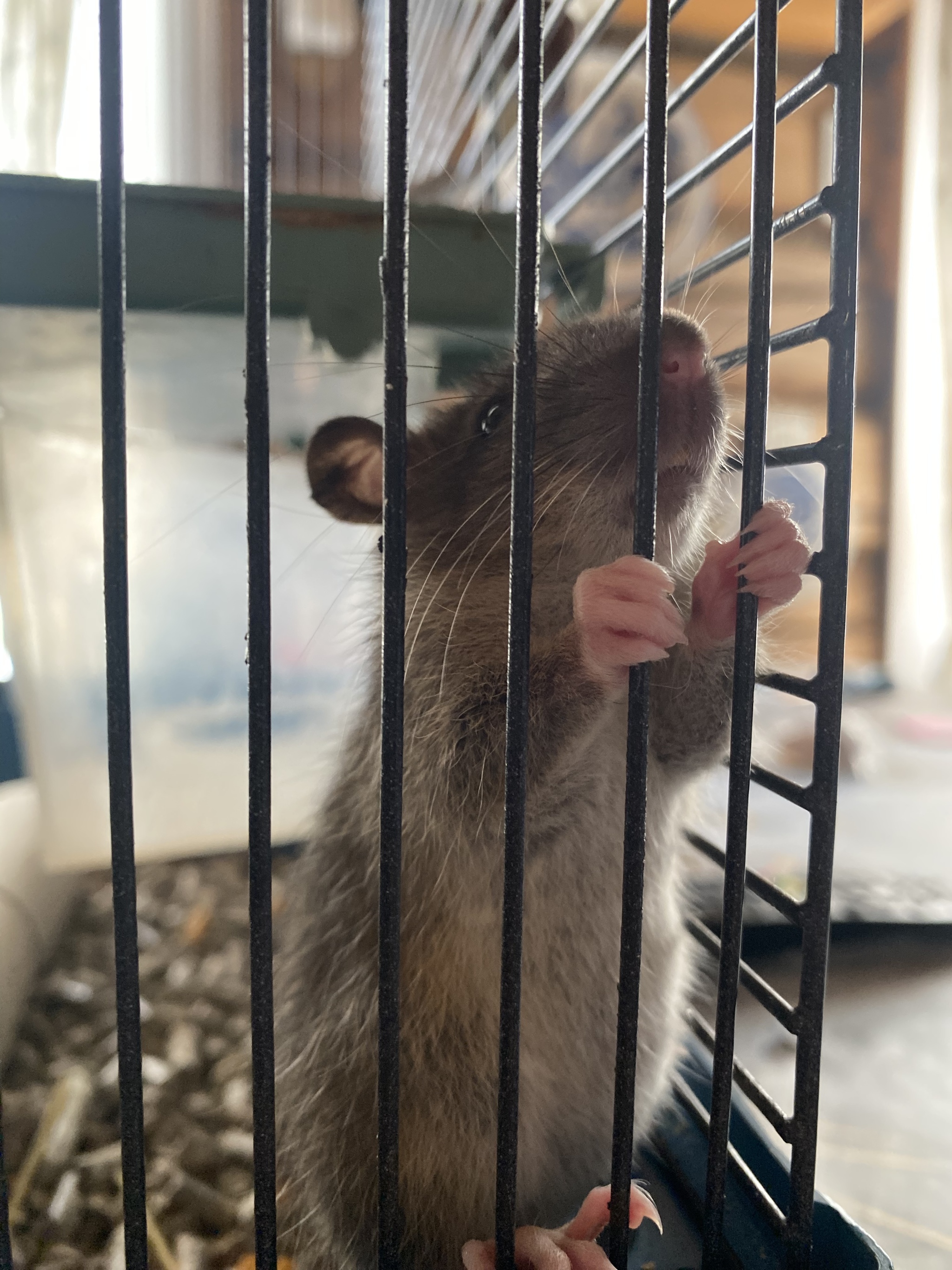 У нас совсем недавно умерла последняя декоративная крыса и малыша была переселена из ловушки в просторную клетку