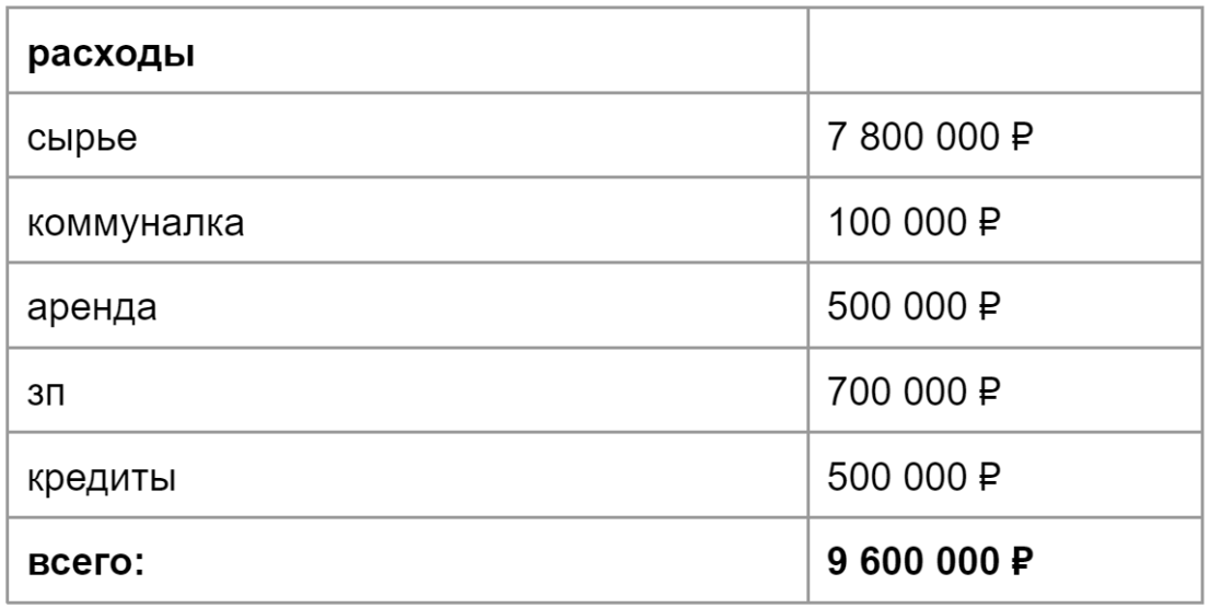 Сперва работали по контракту с предприятием. Затем открыли фабрику. Вот примерная экономика на открытие: