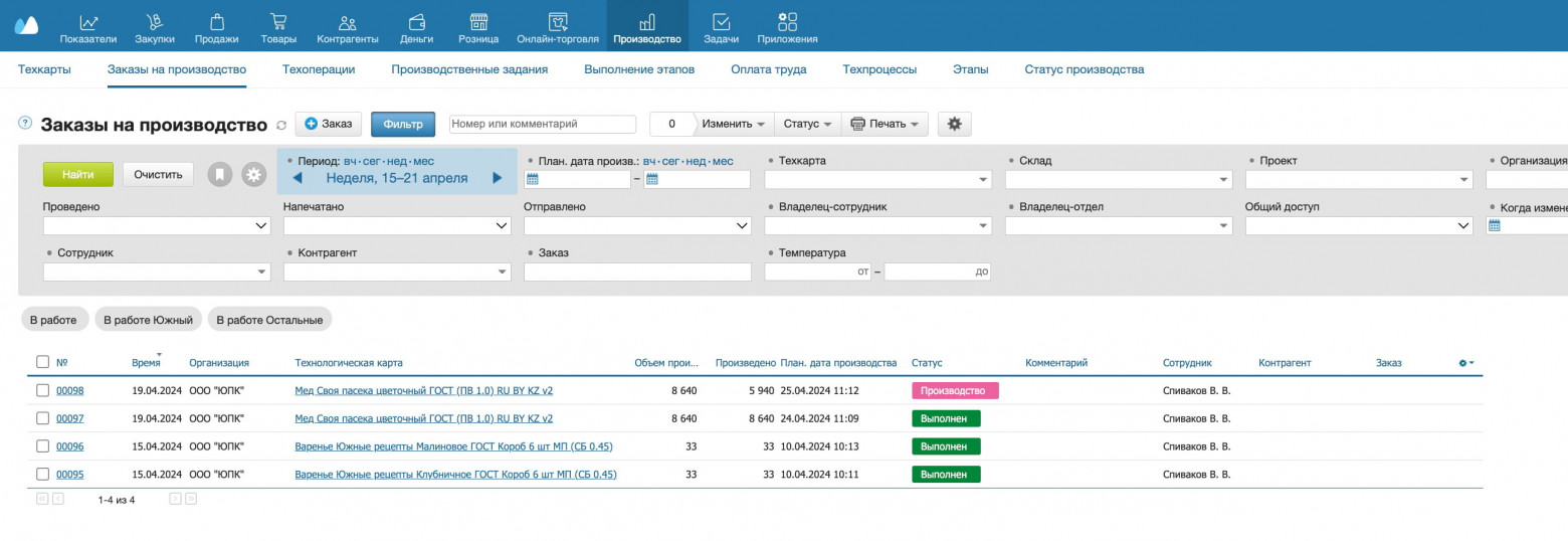 Когда поступает заказ от торговой сети, в МоемСкладе планируем сырье на производство. Для каждой позиции есть техкарты. В техкартах указано сырье: мед, упаковка, этикетка и т.п. Так мы рассчитываем себестоимость.