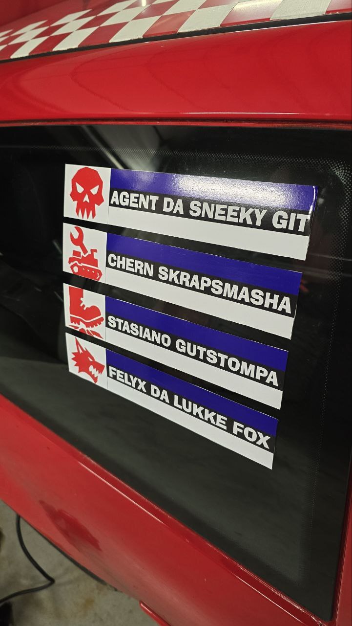 К гонке сбацали наклейки с именами варбойзов на стекло
