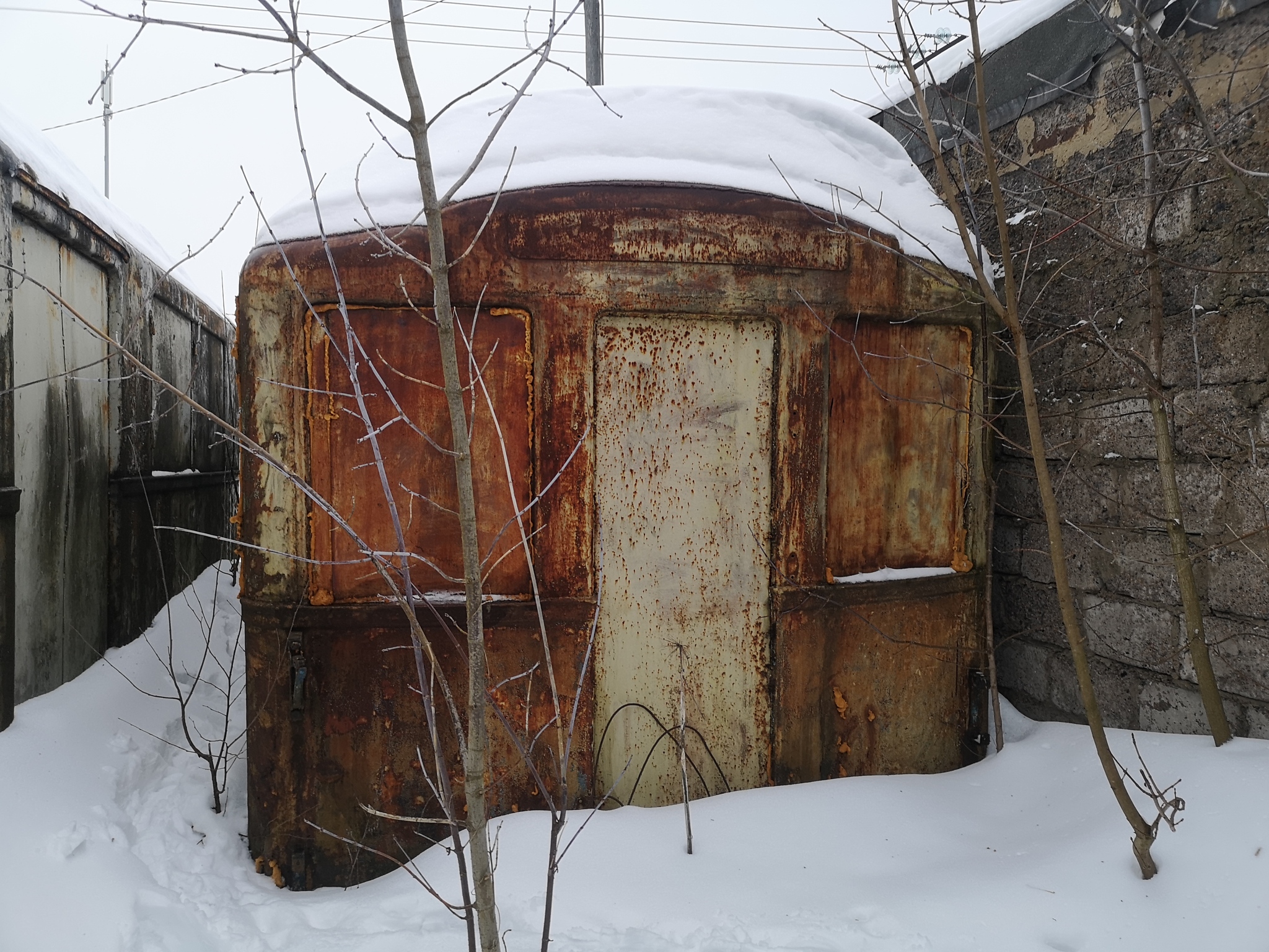 Вагон был единым целым и использовался как жилище. Теперь же он разрезан на три части.