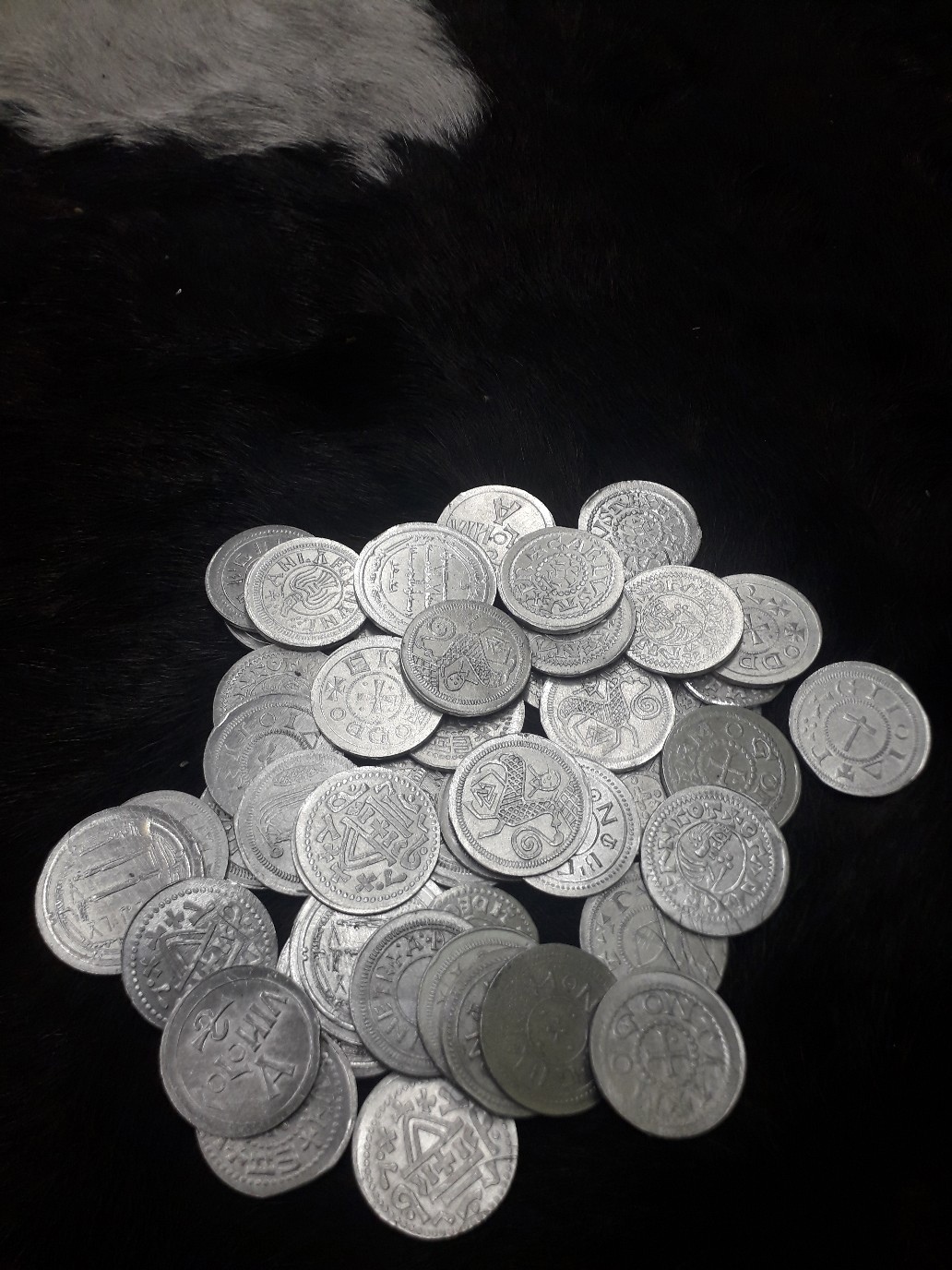 И в него добавим вот такие монеты. От бурной молодости остались пару штампов под "средневековые" монеты.