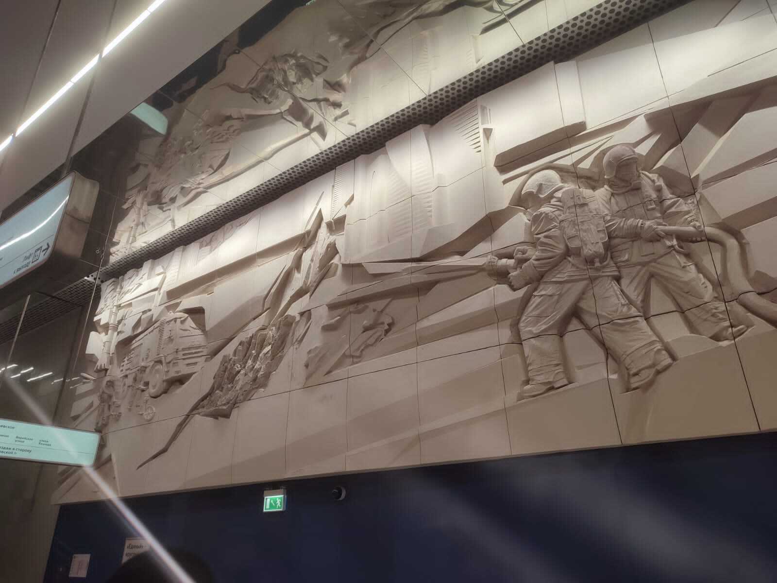 Станция метро Давыдково в Москве открыта в декабре 2021 года. Станцию украшают барельефы с пожарными, сапёрами, лётчиками, водолазами и девизом МЧС: «Предотвращение. Спасение. Помощь».