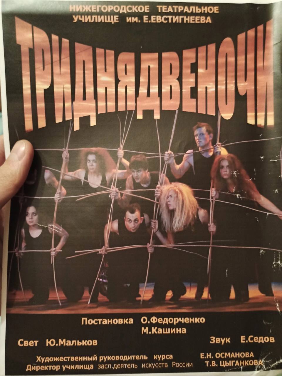О третьей дисциплине — сценическом движении, расскажу через 3 истории: две грустные, 1 забавная. На сцендвижении нас учили жонглировать, управляться с тростью, веерами, сценически драться. Мы должны были уметь работать с реквизитом, который может попасться в спектакле.