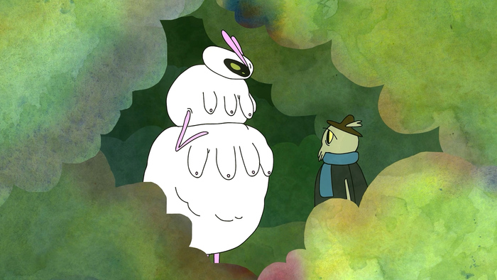 Кульминационная сцена фильма — трип, в котором жук окончательно теряет контроль над собой. Её делала моя коллега, которая лучше разбирается в работе со спецэффектах. Музыку написал наш друг, так как нам нужен был трек без авторских прав, чтобы отправлять мультфильм на фестивали. Впоследствии наша работа попала на "Суздальфест" и "Святую Анну".