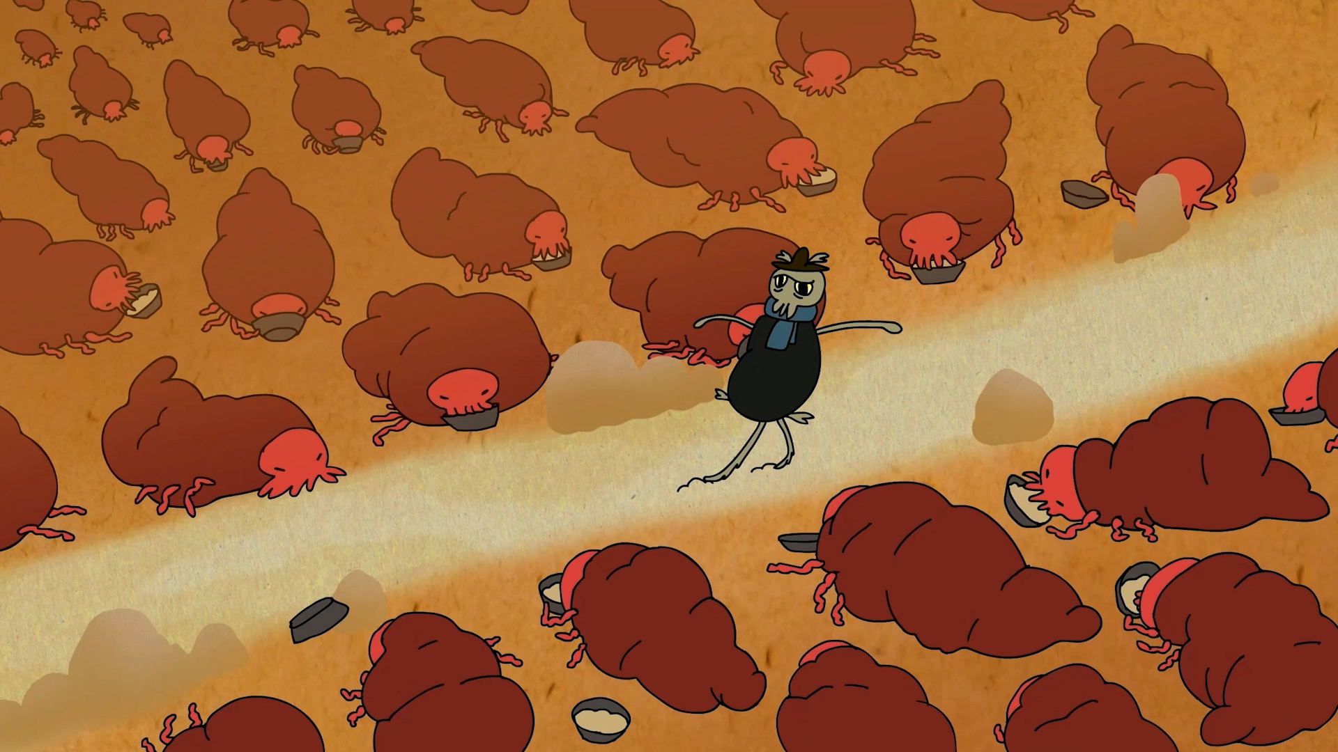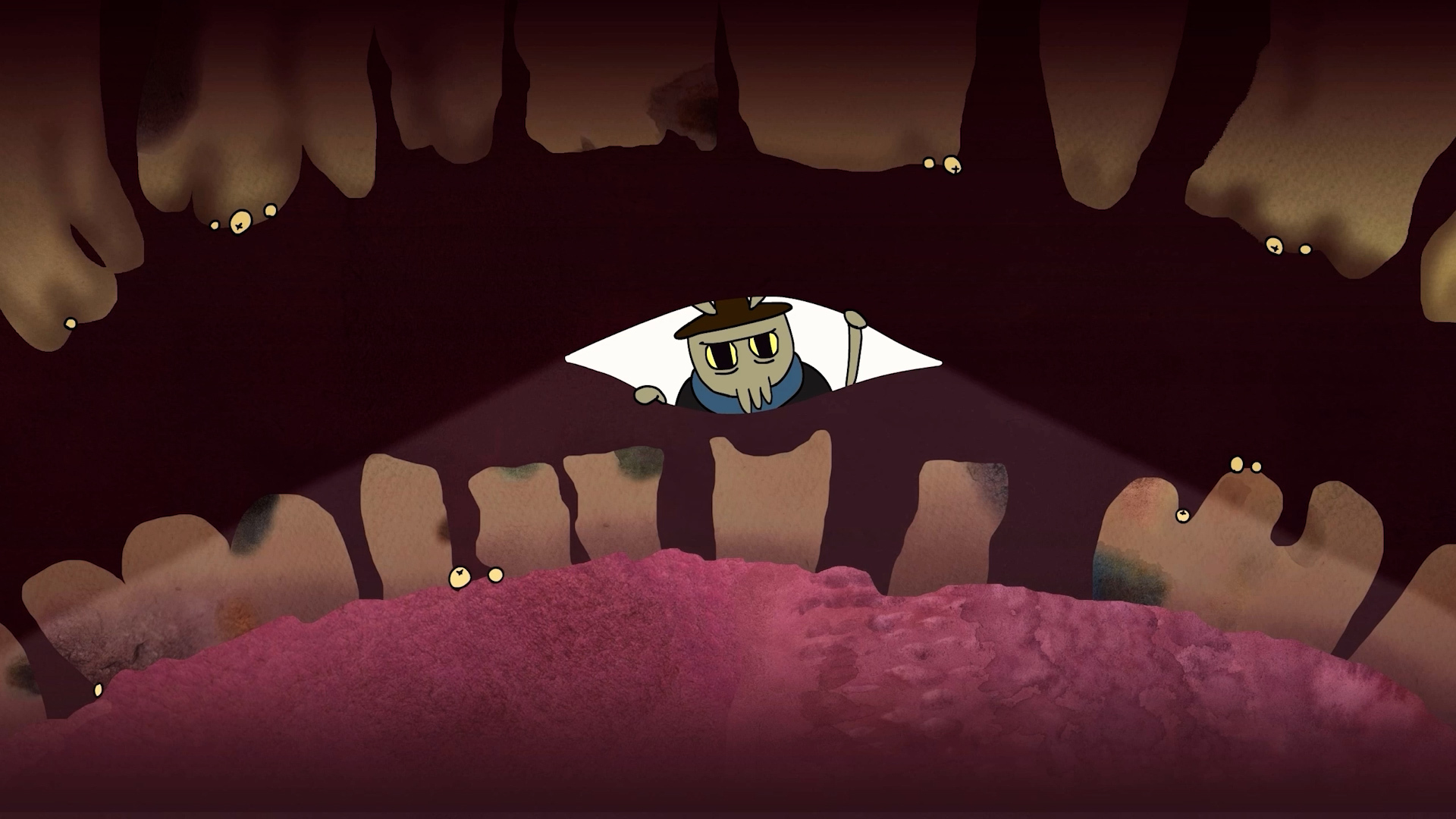 Стилистику строили на сочетании 2D-анимации и ручной графики. Сканировали акварельные текстуры, собирали из них фоны. Референсами служили реальные личинки, куски плоти. Получилось местами и отвратительно, и красиво.