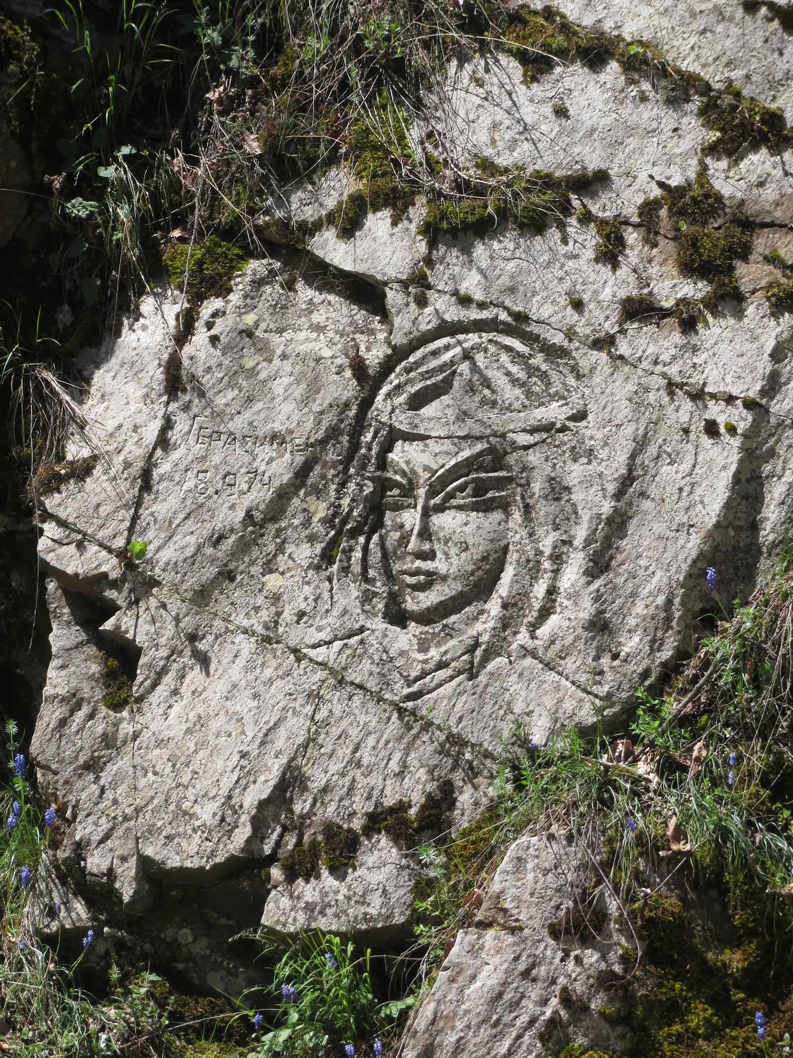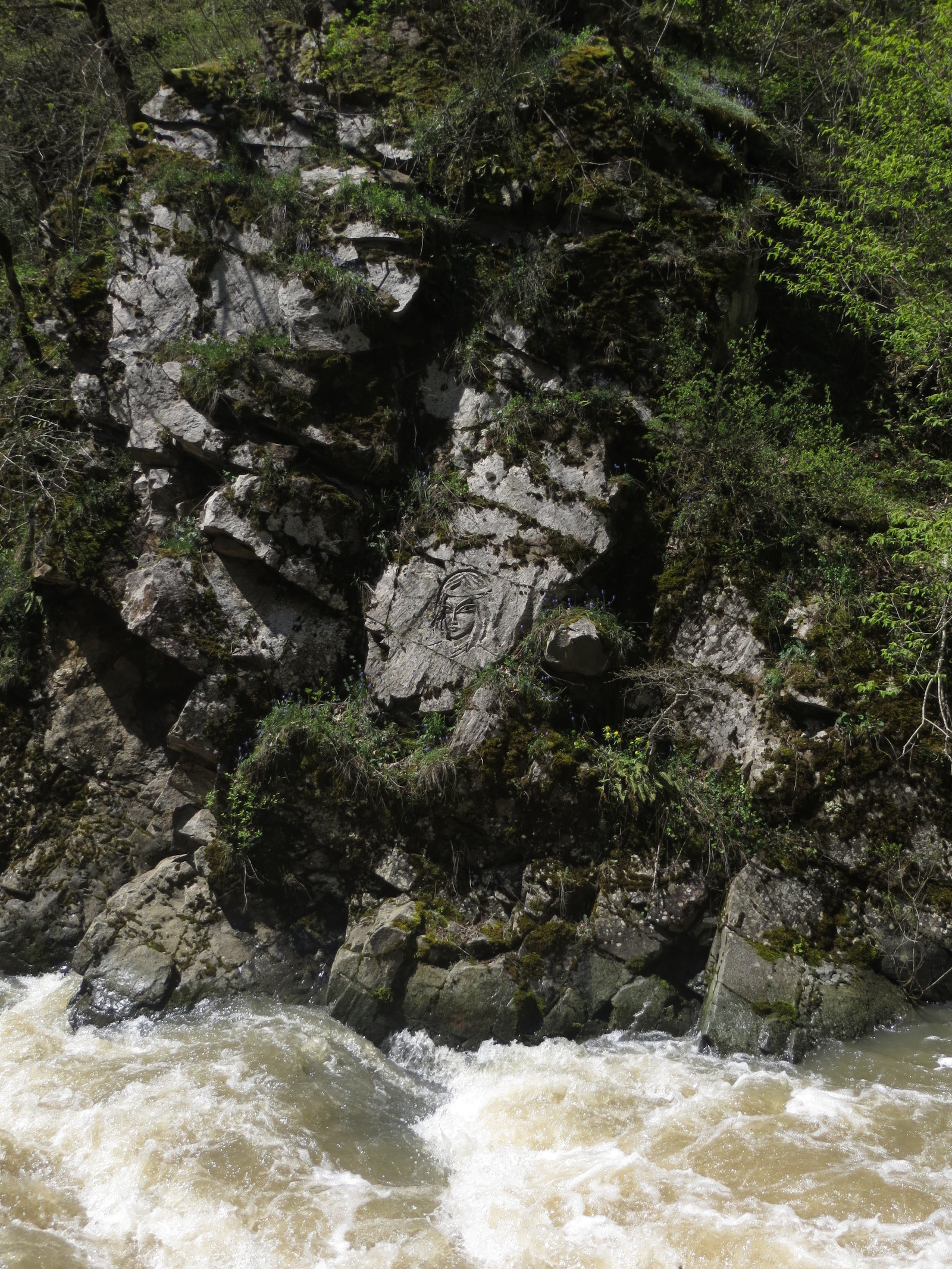 В одном месте на противоположном берегу можно заметить интересное изображение, высеченное в скале: