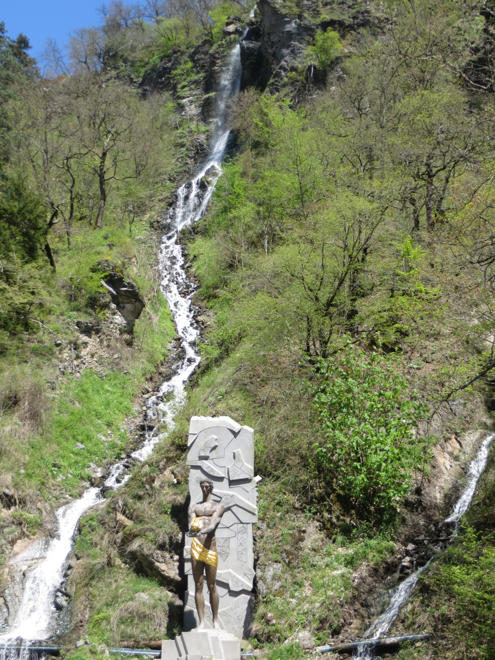 Можно пройти через весь парк, где есть чудный водопад и статуя Прометея: