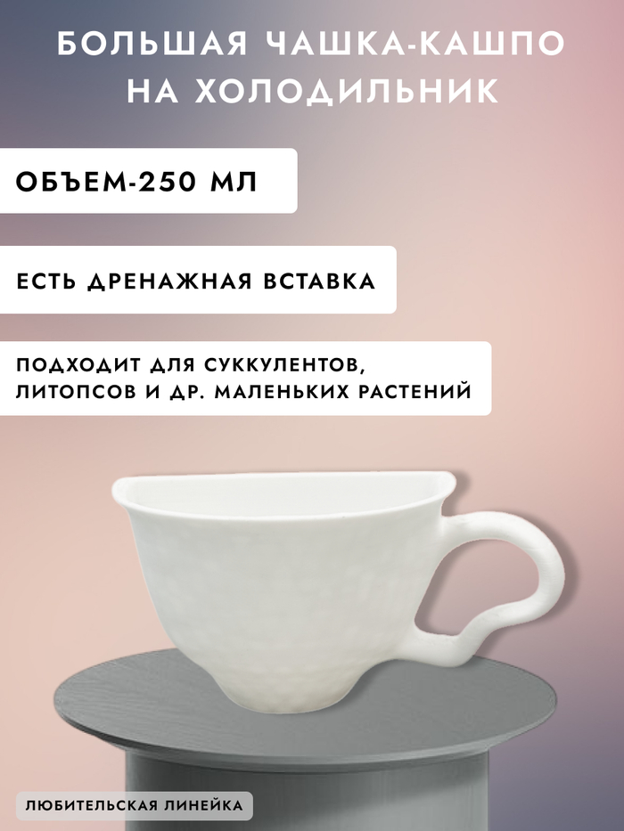 А вот это уже придумка с изюминкой. Представьте себе чашку, которую сзади «срезали» и приклеили магниты. Получилась чашка-кашпо на холодильник для суккулентов, кактусов или просто как декоративный прикол.