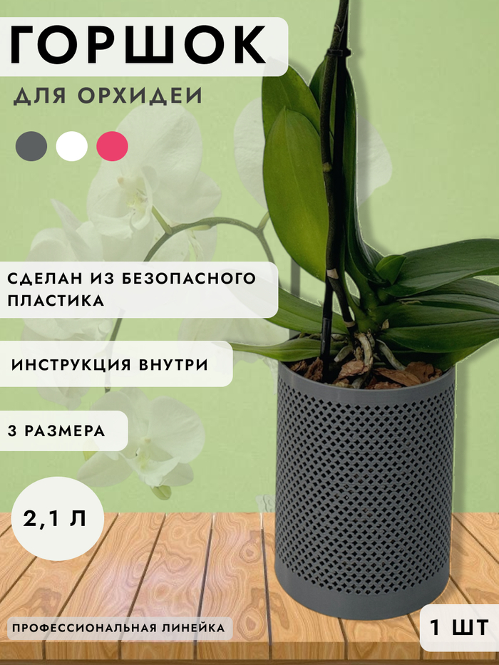 Орхидея капризное существо, ей не подойдёт обычный горшок. Поэтому мы выбрали сетчатую форму, чтобы корням хватало воздуха. То есть не просто горшочек, а функциональное решение для реального цветочного запроса.