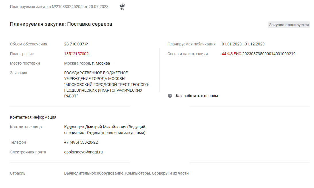4. Теперь важно: контакт, который указан, — обычно посылает на хуй! Типа «Жди закупку» или «Присылай информацию о компании», и потом, понятно, в большинстве случаев письмо прямиком летит в корзину. В планируемых закупках обычно контактное лицо — это руководитель организации, его зам или закупщик. А тебе нужен тот, кто реально выбирает товар/услугу! В твоём случае с серверами это сисадмин, какой-нибудь руководитель ИТ и так далее.