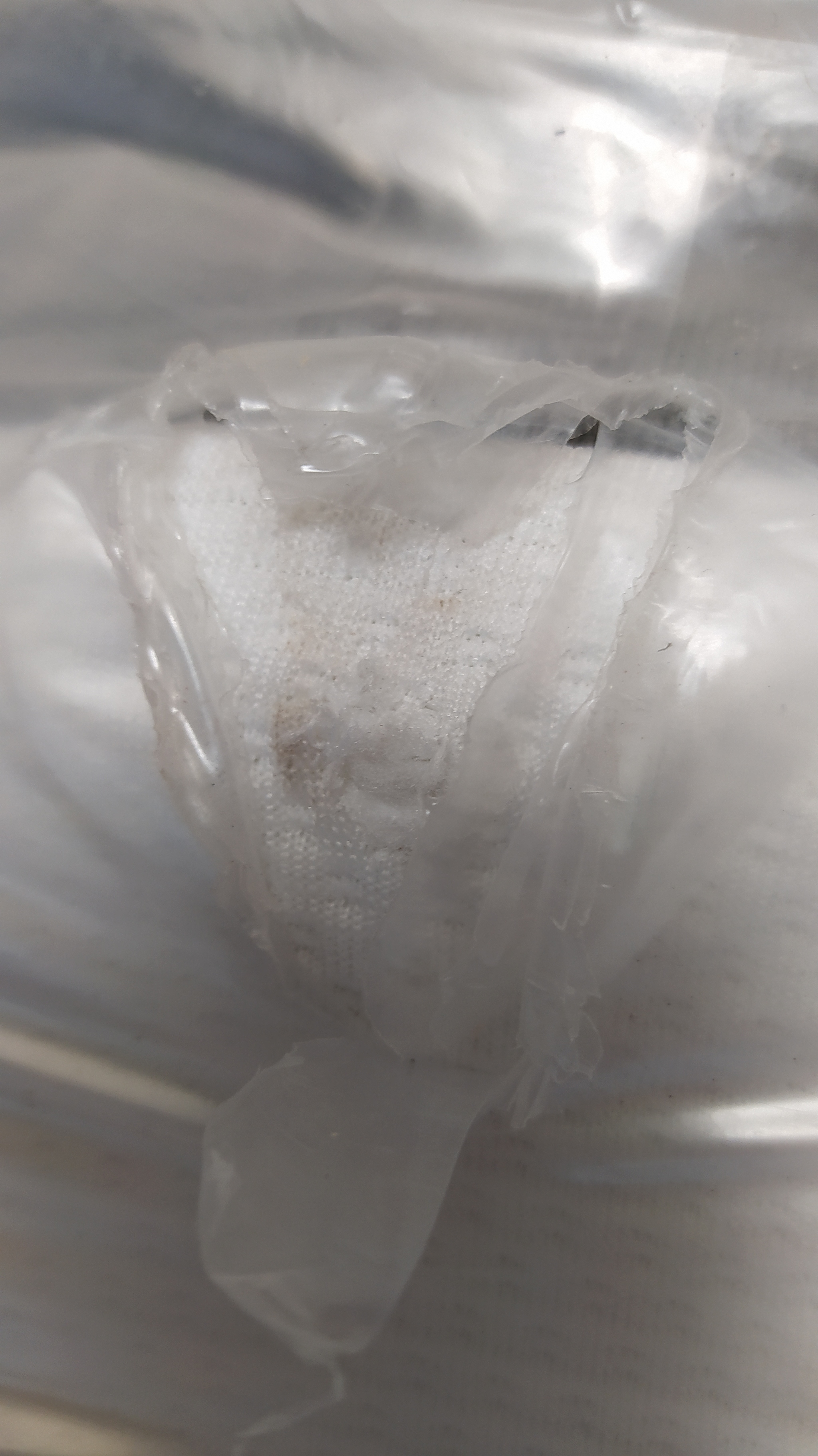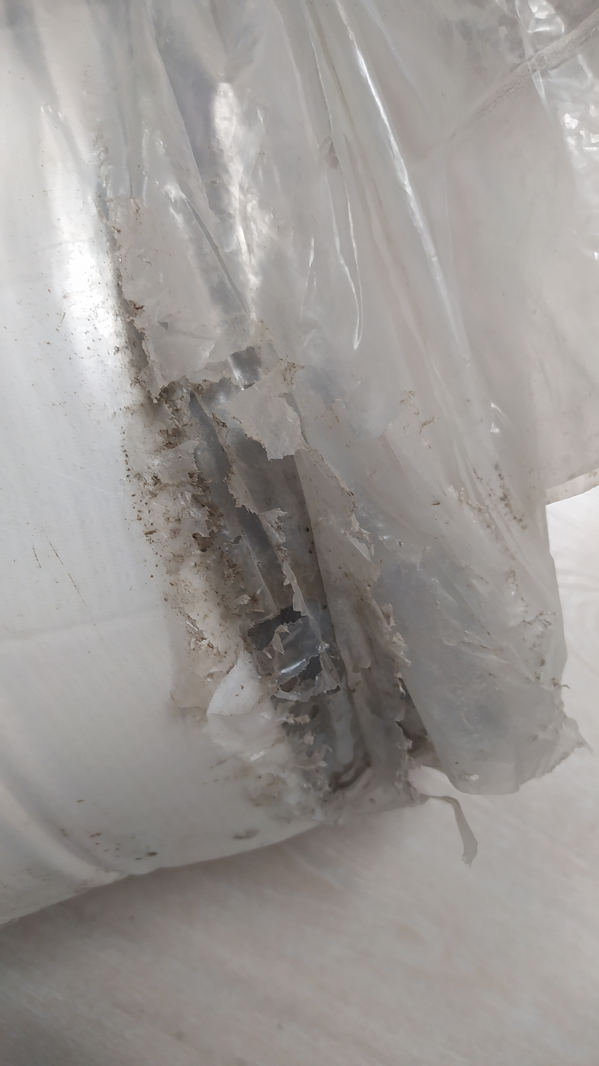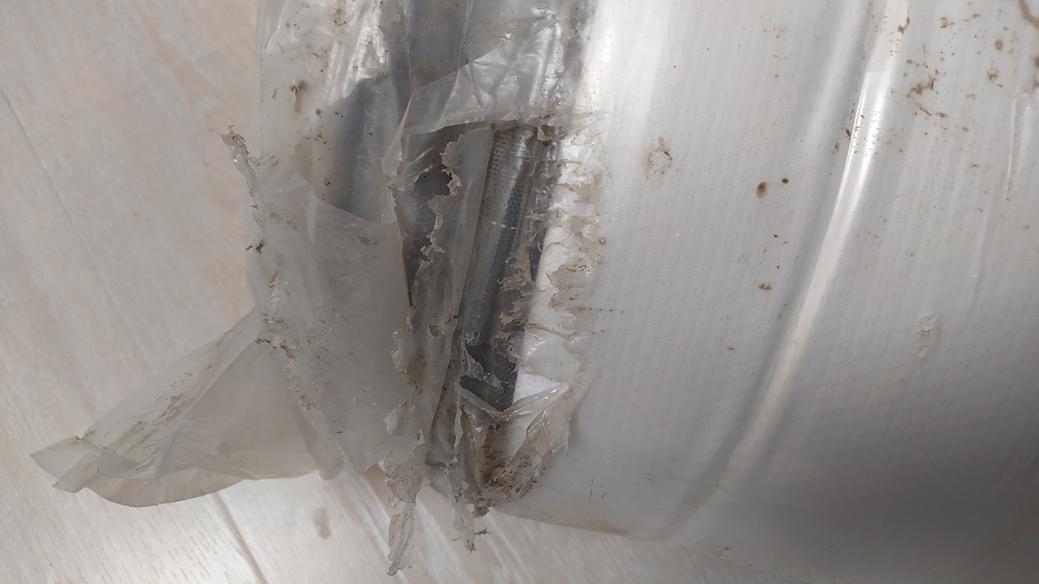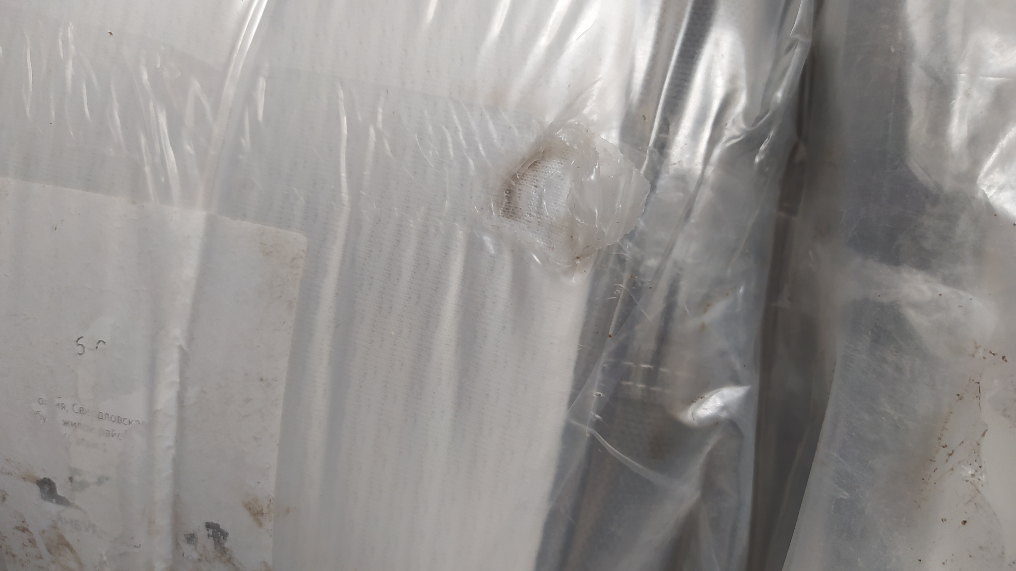 В ходе осмотра было обнаружены повреждения с одной стороны – видать Виктор его волочил по земле защитная пленка порвалась, в одном месте порвался сам матрас. В нескольких местах где порвалась пленка новый матрас был замаран уличной грязью, сама пленка тоже была вся в грязи.
