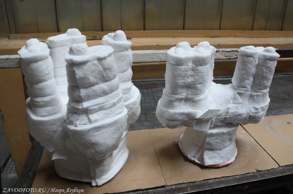 Полученные формы оборачиваются огнеупорным теплоизоляционным материалом для создания оптимального режима охлаждения отливки после заполнения формы жидким металлом. Таким образом, снижается количество металлургических дефектов и повышается уровень качества отливок.