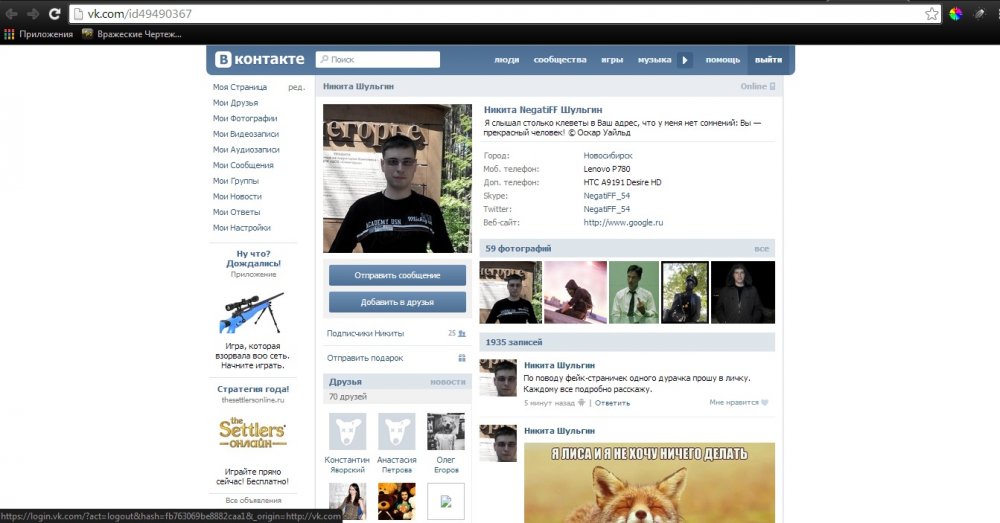Судя по стене, его кто-то подставляет. вот ссылка http://vk.com/id49490367 Как узнать, гед фейк а где реальная анкета? Могли ведь фейк создать, может месть чья-то.