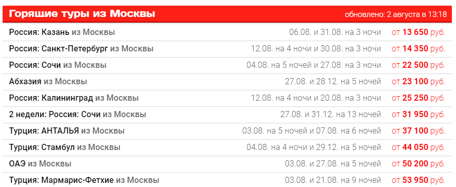 4. Горящие туры