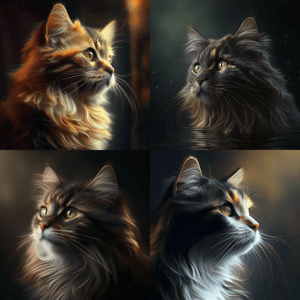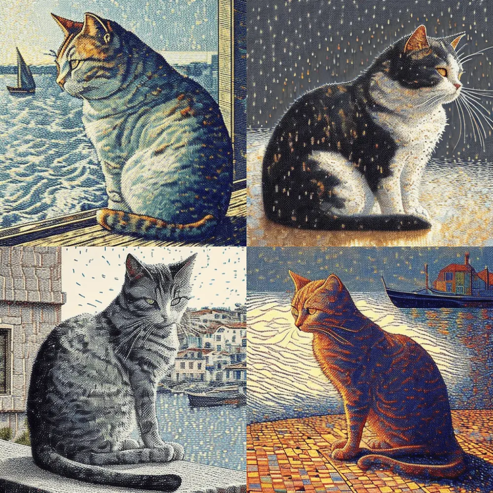 Не уверен, что нейросеть справилась и показала нам Пикассо, но точно можно сказать, что этот кот отличается от дженерик-котов с первых картинок. Разумеется, все дело в деталях: даем дженерик-запрос — получаем дженерик-ответ, специфицируем запрос — получаем более специфичный ответ.