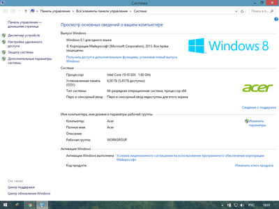 Осмотрев винты крепления задней крышки, стал смотреть систему. Стояла windows 10. Открыв свойства системы, сверил характеристики. Вроде все совпадает....