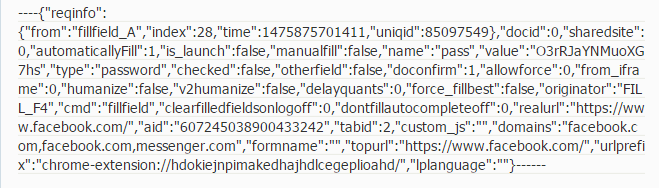 Первый - объект JSON с паролем, именем домена, временными метками и другой информацией, которая, скорее всего, имеет отношение к автоматическому заполнению полей формы.
