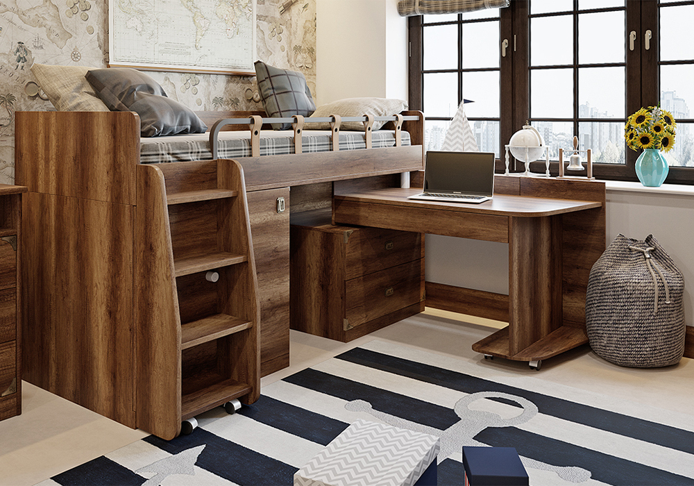 По запросу "кровать чердак" в основном двухъярусные, у которых внизу вместо нижней кровати место под стол.