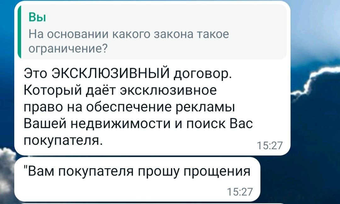 ИСКЛЮЧИТЕЛЬНОЕ ПРАВО, что это? Почему столько ограничений для продавца? Я не хочу и мне не нужно исключительное право. Задаю вопрос риэлтору. Прилетает ответ от него: