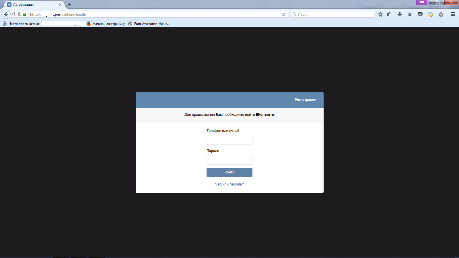 Что имеем: фишинговый сайт, которому под видом подписи безобидных петиций, не сильно грамотные граждане в плане интернетов и современных технологий сливают пароли. Ну или просто невнимательные граждане.