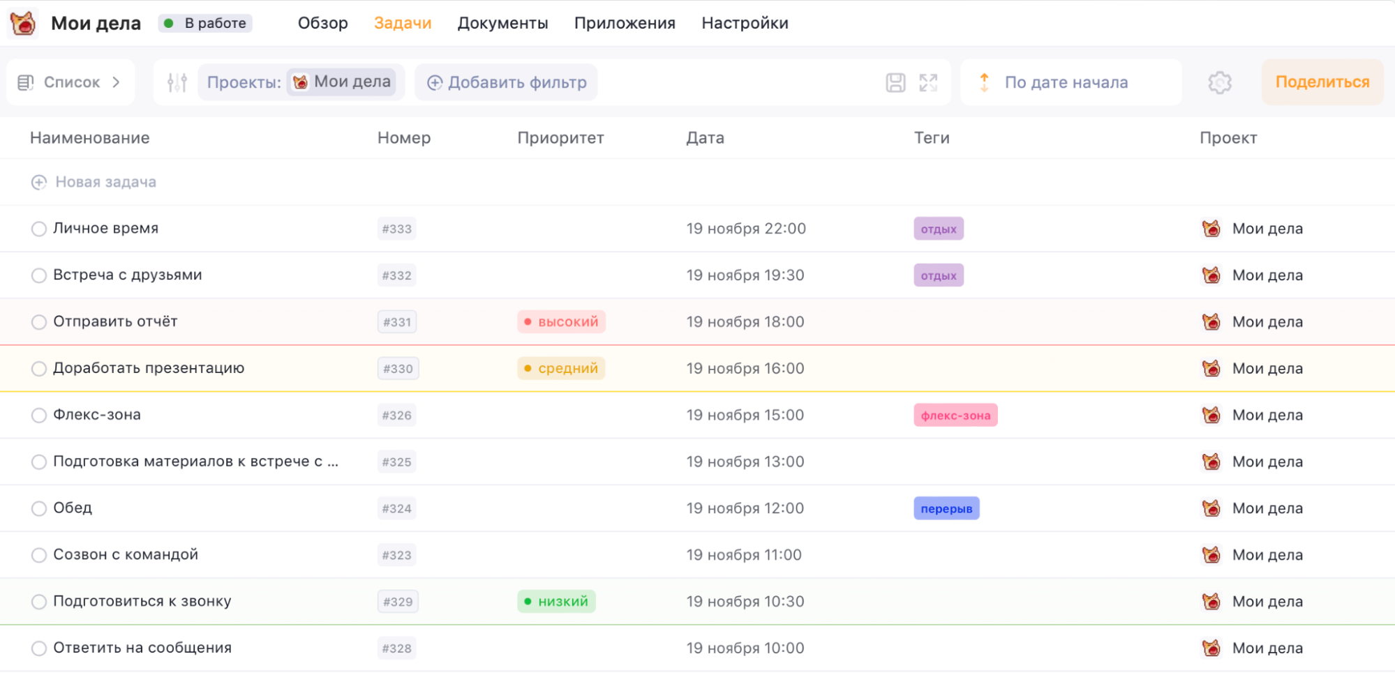 Закладывай в расписание не только рабочие задачи, но и встречи с друзьями, походы в кино и даже время обеда — пусть эти часы будут неприкосновенны. Чтобы сохранять эффективность, нам необходимо качественно восполнять свои ресурсы.