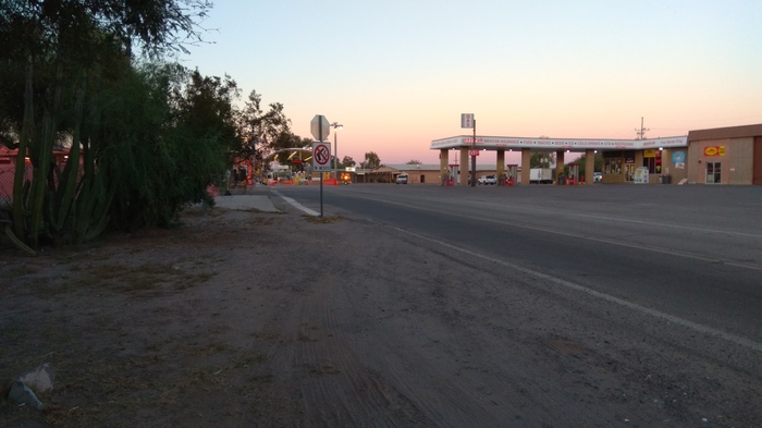 На заправке останавливались мексиканцы на двух машинах. Попросил у них воды. Мне дали ледяную бутылку 0.5. Я выпил её быстрее чем смог понять, что держу её в руках.