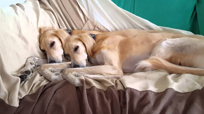 Я поворачиваюсь и вижу как на заднем сидении мирно спят две белые собаки. Машина настолько огромная что залезая внутрь я их даже не заметил.