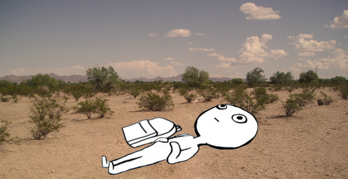 К концу третьей части я оказался посреди пустыни, примерно в 10-15 км от ближайшего населенного пункта, без какого-либо плана, без снаряжения и без запасов воды и еды.