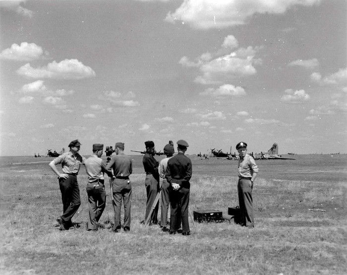 21 июня 1944 года в 05.50 163 бомбардировщика В-17 из состава 13-й и 45-й бомбардировочных групп 8-й воздушной армии США начали взлет со своих баз в Англии. Сбросив бомбы на нефтеперерабатывающий завод в 150 км южнее Берлина, они продолжили полет на восток и приземлились на Украине, преодолев расстояние примерно в 2400 км.