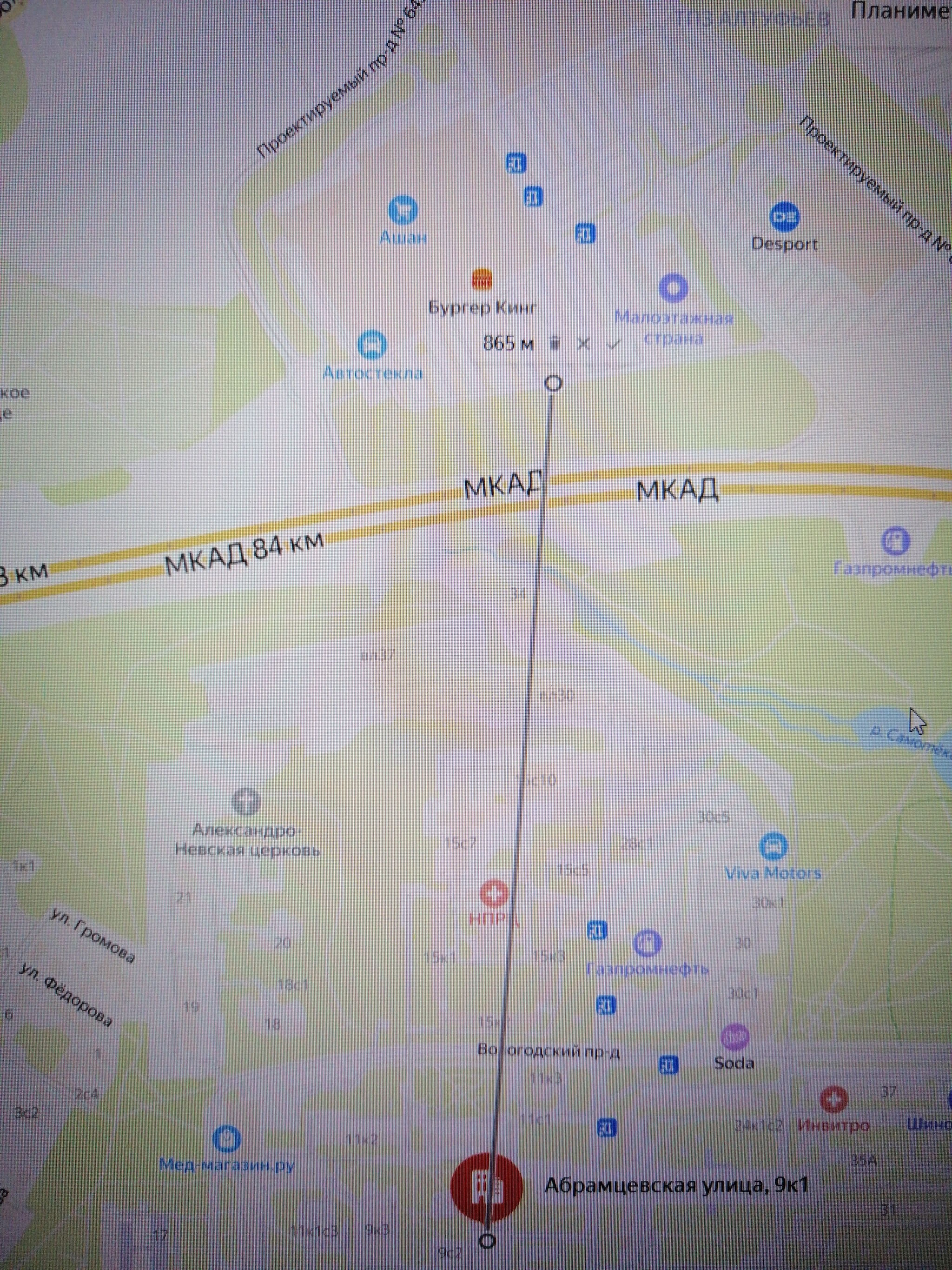 Я живу в Москве, в Алтуфьево/Лианозово. Почти у МКАДА, напротив святой троицы - Ашан, Декатлон и Леруа (фото из окна прилагаю. Зелененьким вдали светится вывеска Леруа Мерлен)