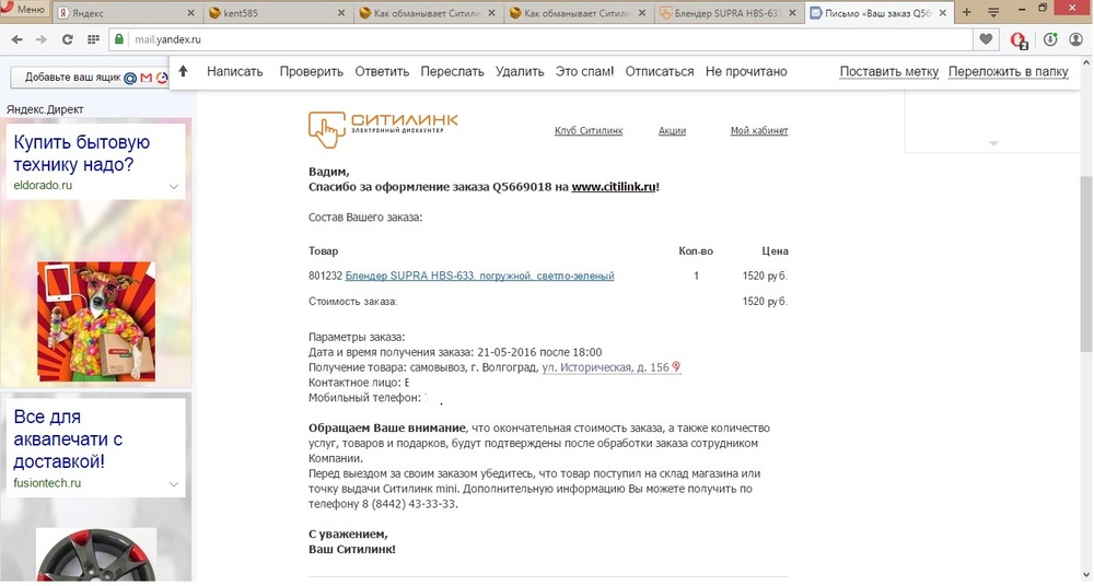 Заказал и забыл на пару дней так как собирался заехать в пятницу и забрать товар по пути. И вот сегодня мой друг случайно забыл отключить VPN в браузере, ну или я ждал новую серию игры престолов с лостфильма через анонимайзер. Я зашел на страничку где продавался это же блендер (благо страницы с покупками я добавляю в закладки) и о чудо!!!!