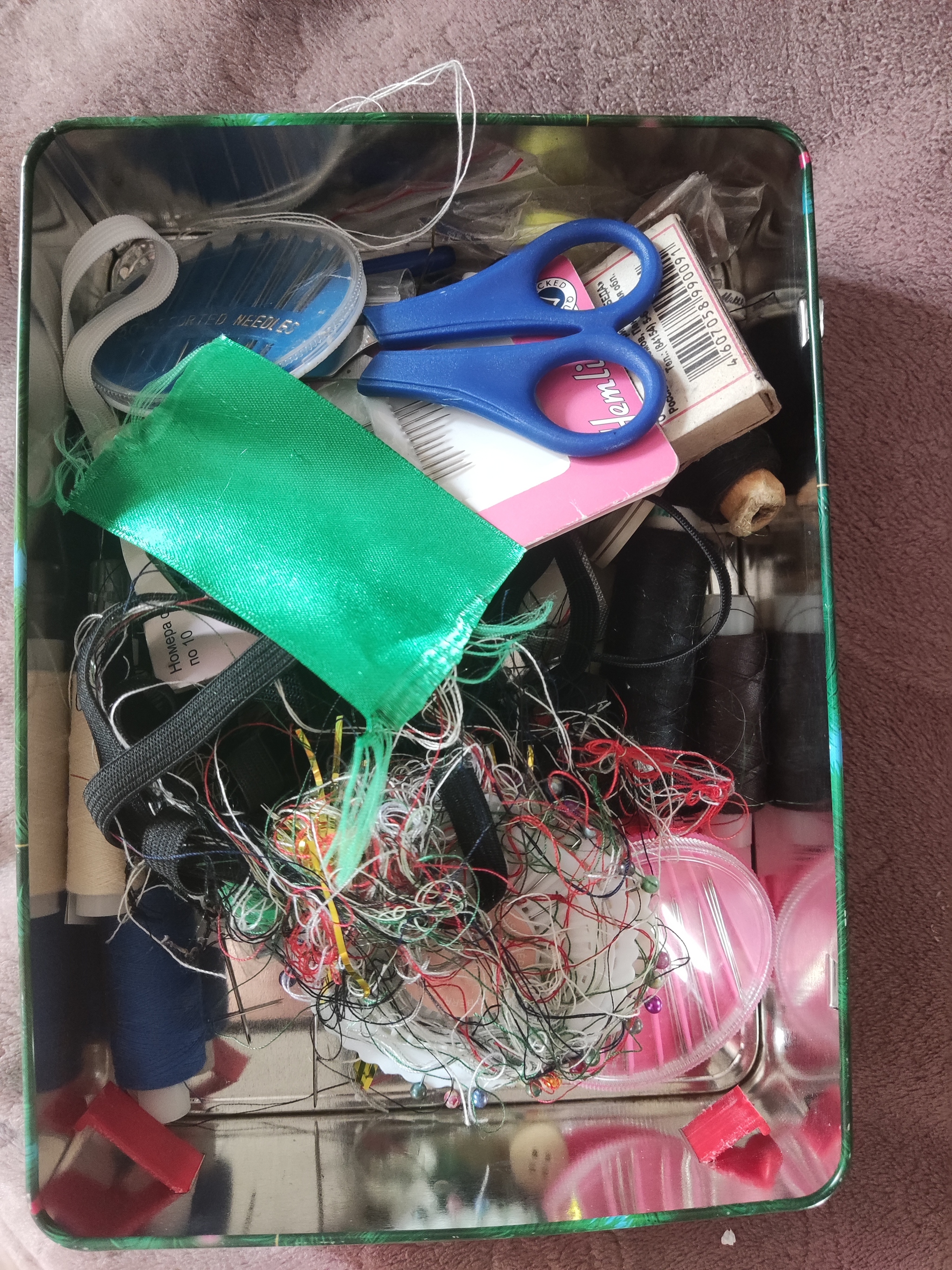 Итак, прошу вашему вниманию - английские булавки. Пользуюсь ими часто (чаще 1 раза в неделю), обычно достаю из этой держалки почти все булавки. А потом раскладываю их обратно по цветам. Люблю порядок)