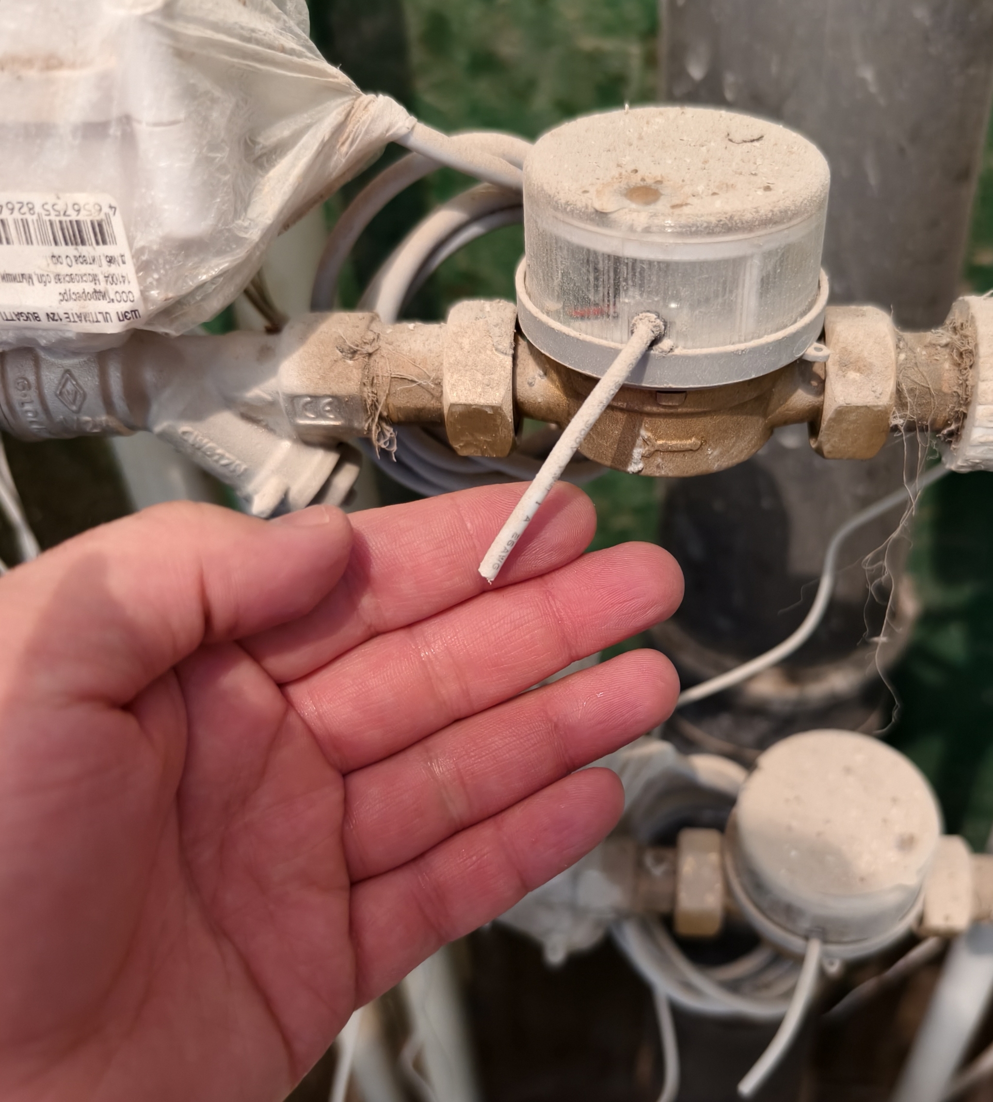 Наднях обнаруживаю, что сантехник зачем-то обрезал провода. Как ему в голову могла прийти идея обрезать провода? Я ему задал такой вопрос, на что он ответил, что это не он. А кто тогда? Других людей в квартире не было. Потом сантехник объяснил, что в нашем городе такое пока не работает. Работает, просто он не знает! И нафига я тогда купил счётчик за 900 рублей, если мог купить без проводов за 500 рублей? Теперь придется искать и покупать провода, чтобы удлинять до контроллера.